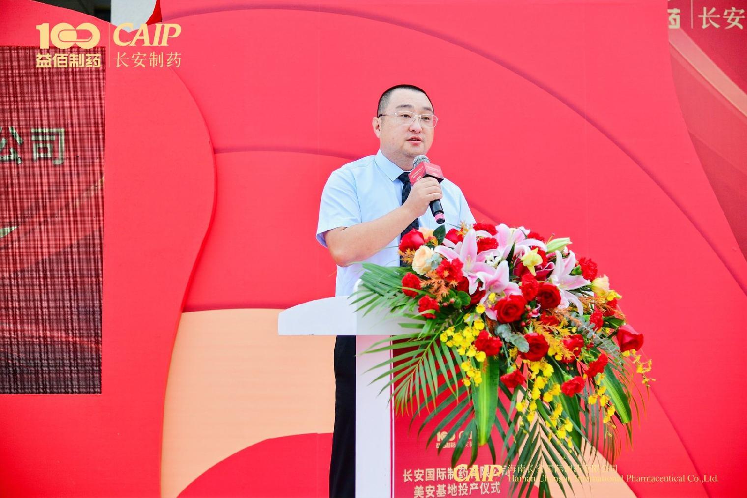 海口市副市長、高新區工委書記劉立武代表海口市委、市政府對長安國際制藥美安基地順利投產表示祝賀。他表示:回顧了美安基地洽談、簽約、開工到建設,時間正好是三年,三年時光長安制藥的建設者們不辭辛勞日夜兼程,在保證質量的情況下,以最快的速度完成建設,贏得了市委、市政府及高新區的一致認可,借此機會希望長安制藥深耕海口、深耕美安,推出更多的品種、更多的研發,海口市委、市政府將一如既往支持長安制藥的發展建設。