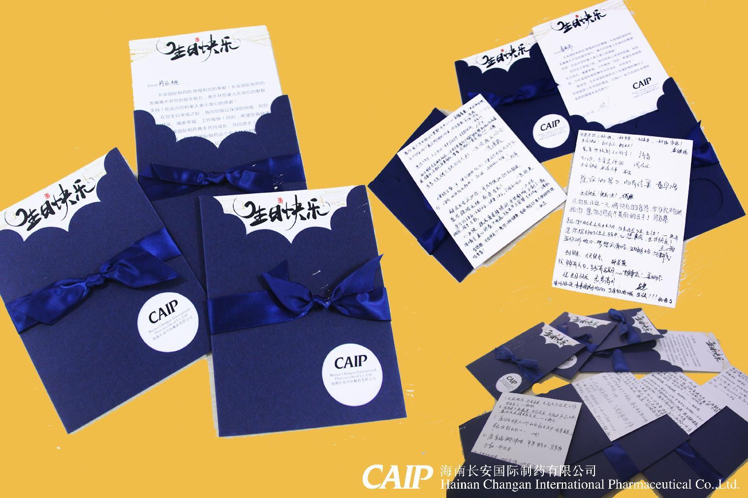 公司為每位壽星們精心準備了生日蛋糕和禮物,同時還準備了同事們親手寫的賀卡,向壽星們表達了長安制藥這個大家庭對員工的祝福和期盼。